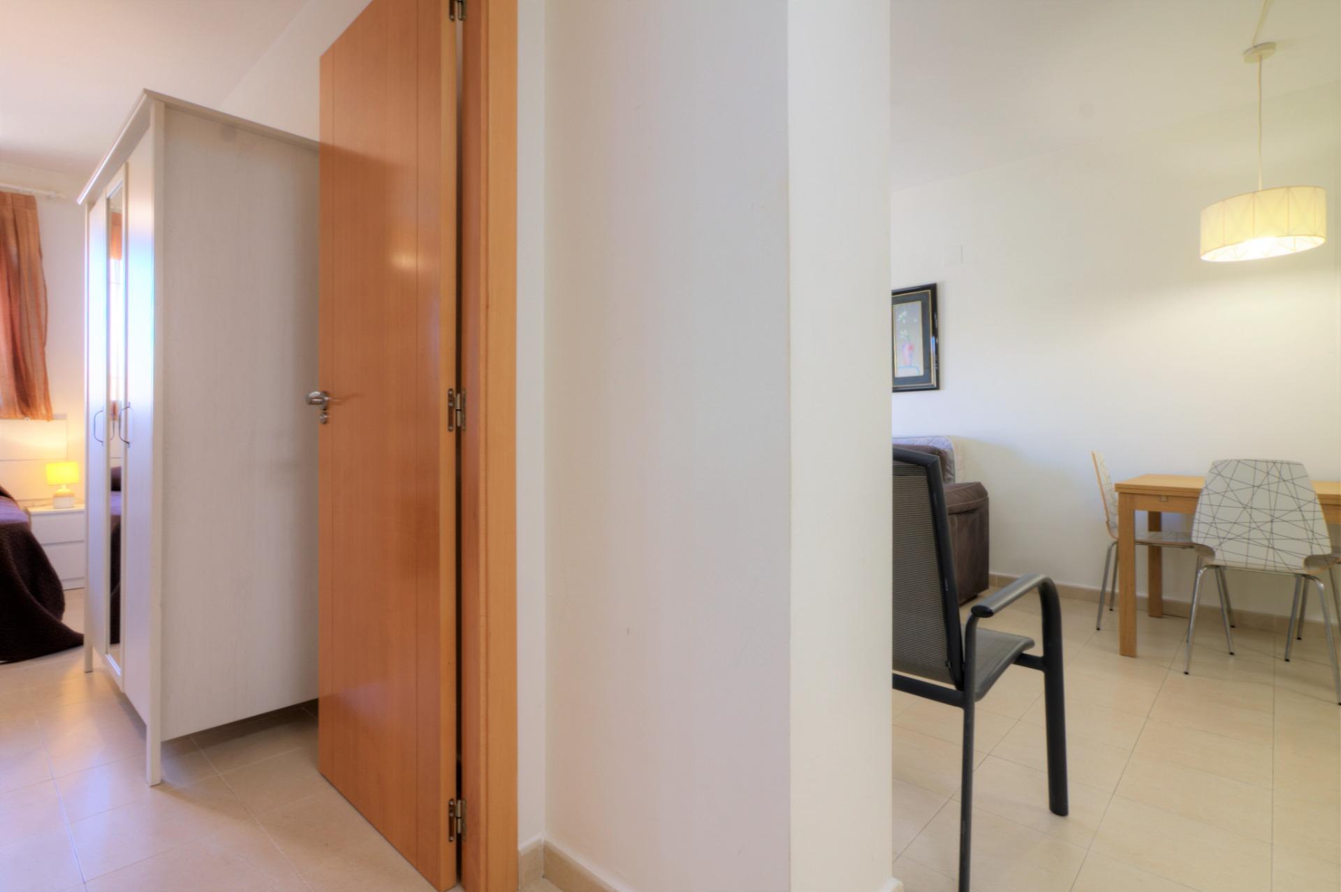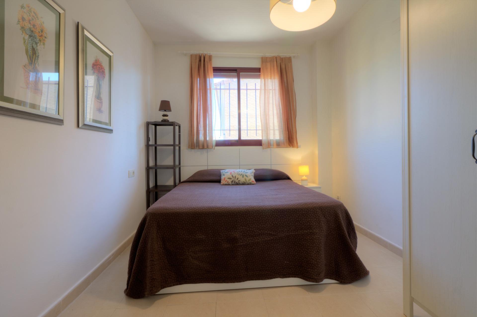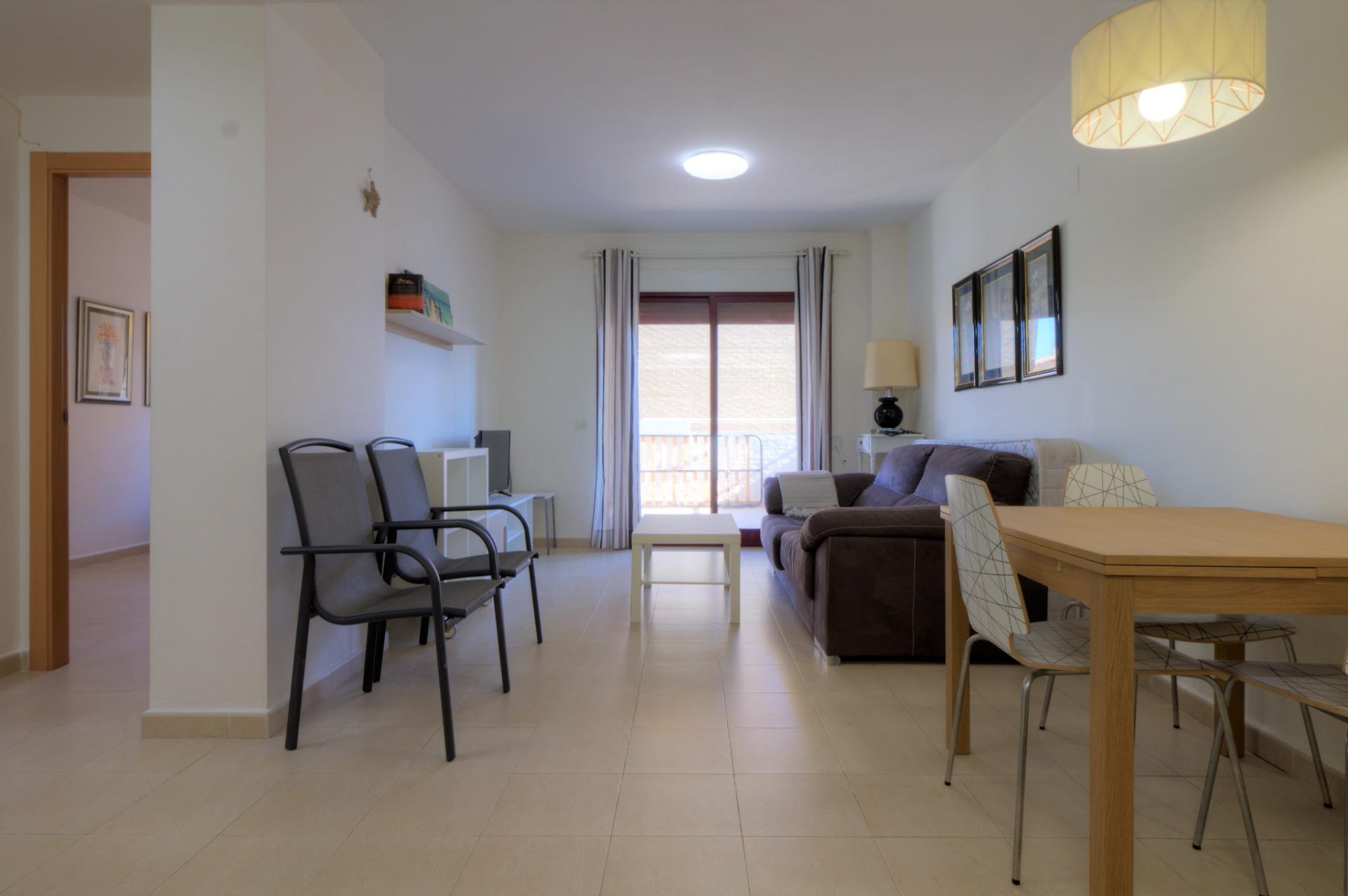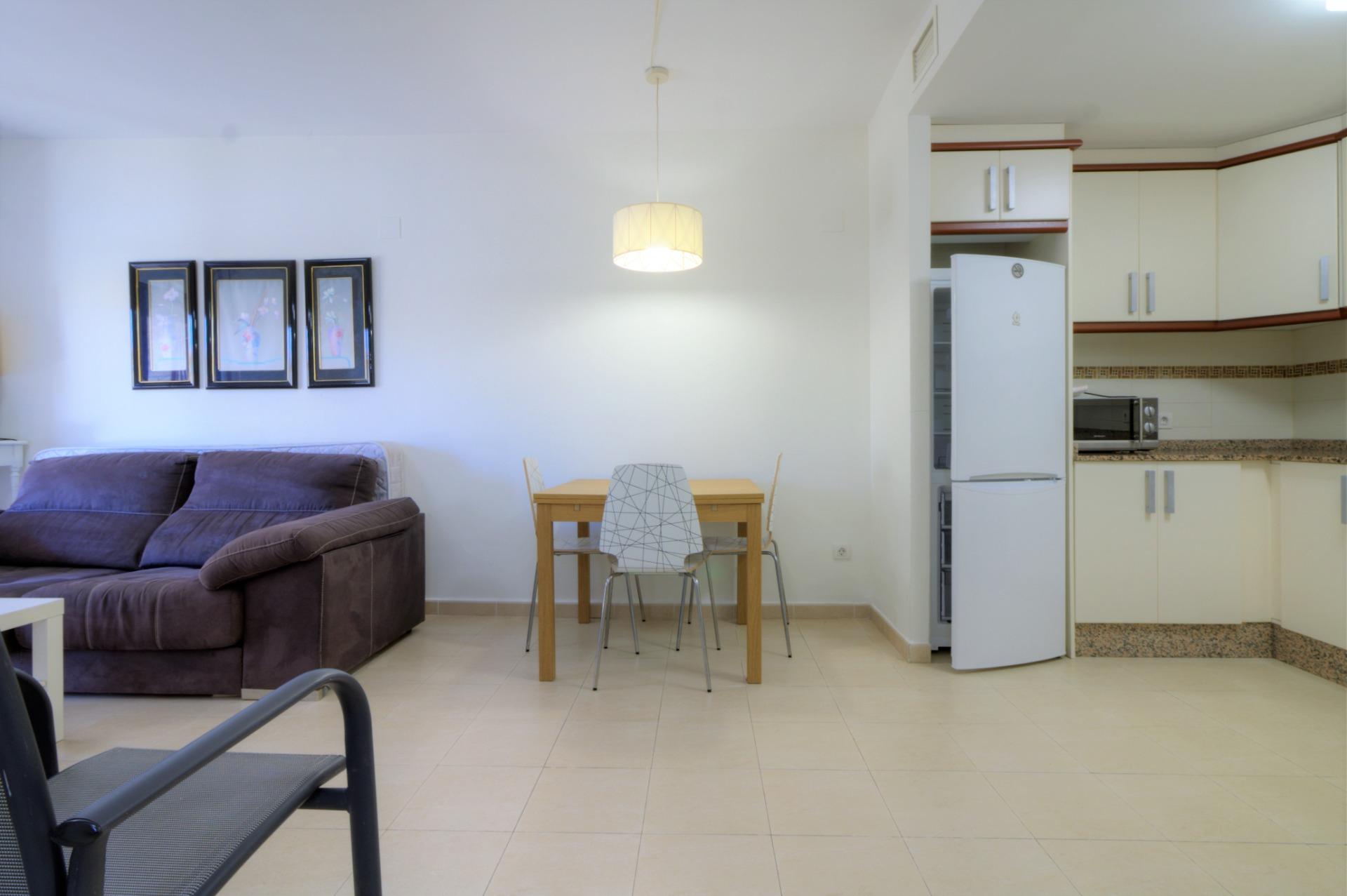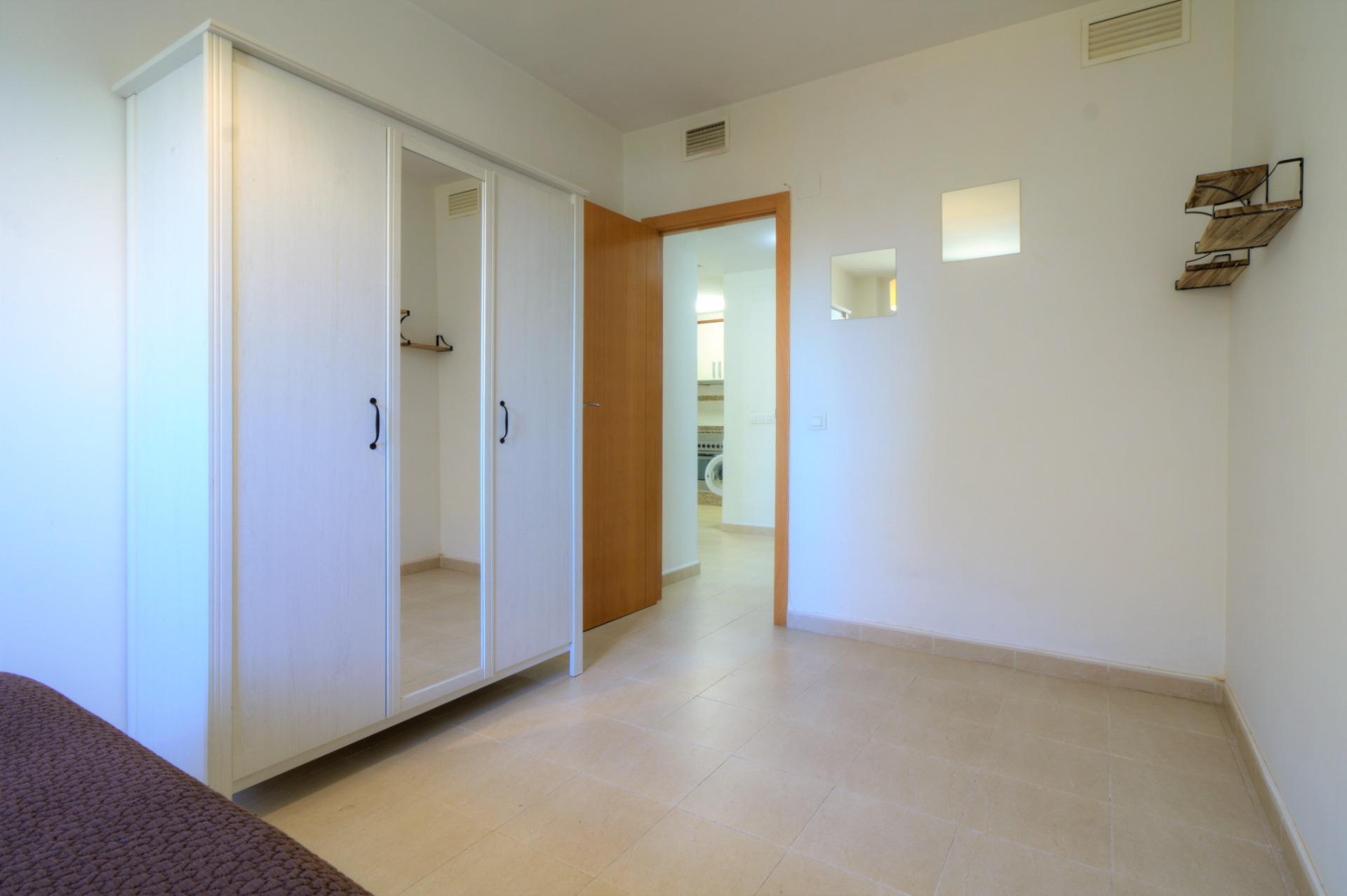 Acogedor apartamento en una bonita urbanización del casco antiguo de la playa de Almenara. Se trata de un primer piso con ascensor, orientación norte. La vivienda cuenta con un armario empotrado en la entrada muy práctico, cuarto de baño completo, un dormitorio doble, salón comedor con cocina office y una bonita terraza con vistas a la piscina comunitaria de la urbanización. El precio también incluye el uso de una plaza de parking.