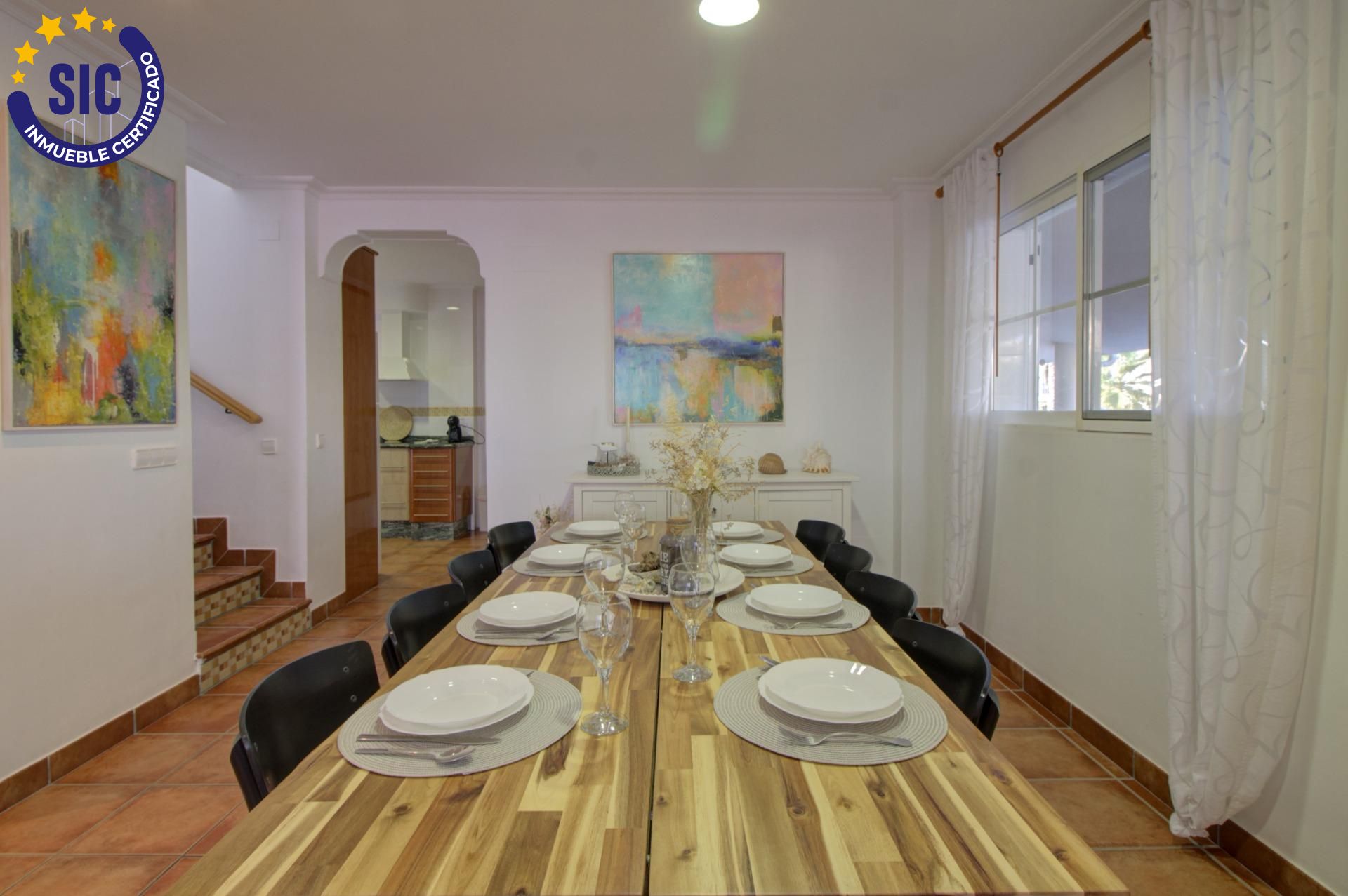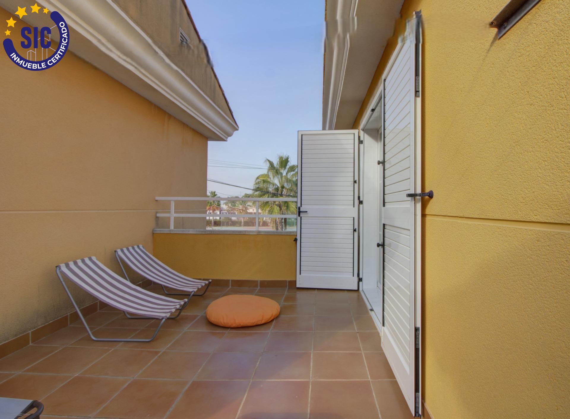 Imagina despertar cada mañana con la brisa del mar entrando por las ventanas y la luz natural acompañando cada momento del día. Este pareado en Playa Casablanca, Almenara, es mucho más que una casa: es un refugio para quienes buscan calidad de vida, tranquilidad y cercanía al mar, a tan solo 50 metros de la playa. Construida en 2006 y con 185 m², la vivienda se encuentra lista para entrar a vivir, lo que supone un importante ahorro en reformas y tiempo, permitiéndote centrarte desde el primer día en disfrutar de tu nuevo hogar. Pensada para familias, su distribución es cómoda y funcional. En la planta baja, la habitación principal con baño en suite ofrece privacidad y confort, mientras que el salón, la cocina y el aseo se abren al exterior, conectando directamente con un porche que rodea la vivienda, perfecto para comidas al aire libre, juegos o momentos de descanso. La primera planta invita a la calma con una acogedora salita, dos amplias habitaciones dobles y un cuarto de baño completo, además de tres terrazas que regalan vistas al mar y llenan la casa de luz durante todo el día. Cada rincón está pensado para vivirlo con calma, sin prisas. Ubicada en una zona tranquila, próxima al casco antiguo de Almenara, combina el encanto de un entorno residencial con la comodidad de tener el mar como vecino. El garaje incluido completa una vivienda que invita a crear recuerdos, disfrutar del sol, del silencio y del sonido de las olas. Aquí no solo compras una casa: eliges una forma de vivir. ¿La vemos juntos?