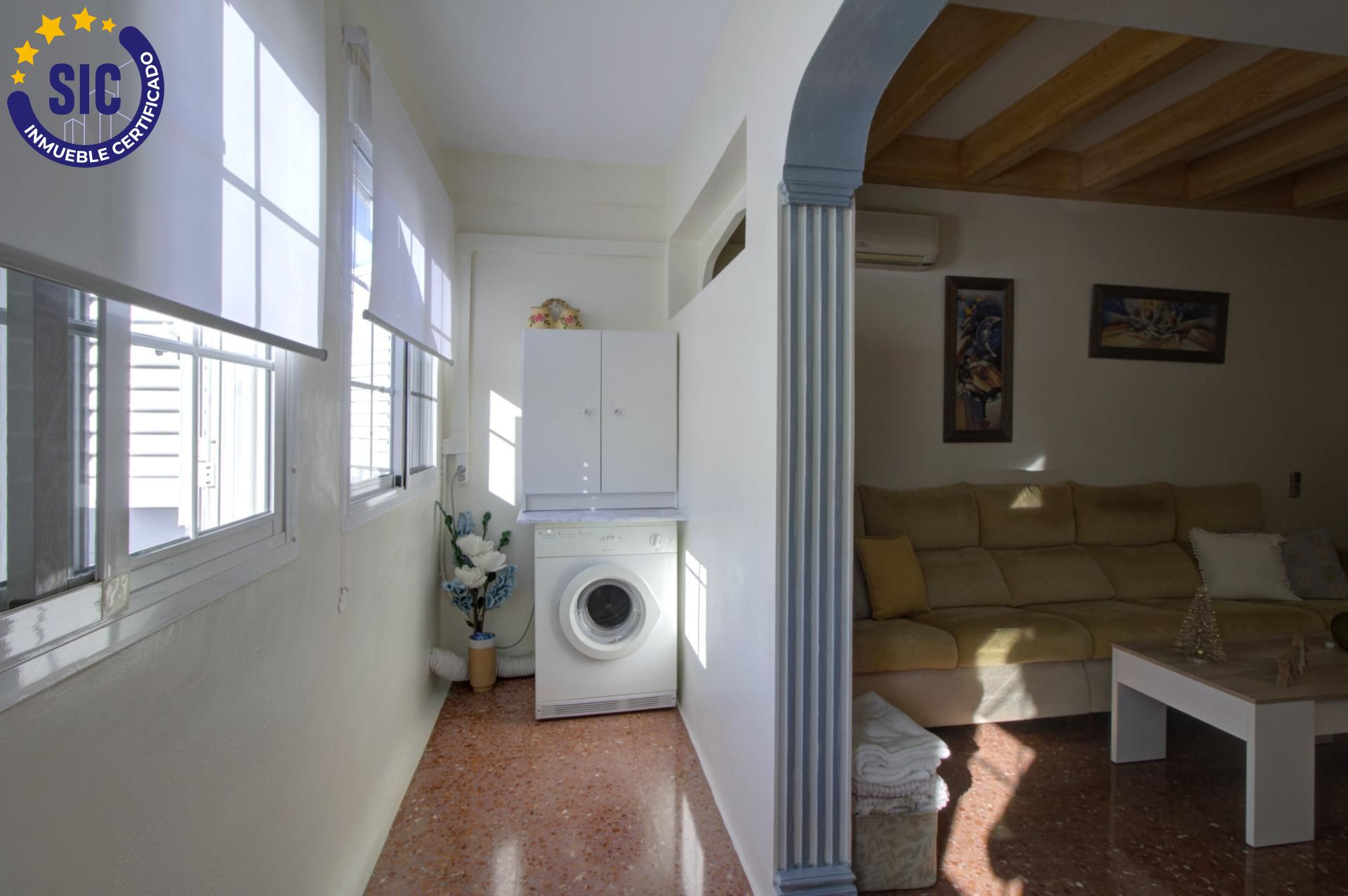 La vivienda, con 160 m², ofrece una distribución original y muy funcional. En la planta baja, un amplio garaje con capacidad para al menos dos vehículos y un gran trastero en altillo resuelven el espacio de almacenaje con total comodidad. En la primera planta, la vida diaria fluye en un salón-comedor muy luminoso, un dormitorio, baño completo y una cocina con salida a un patio trasero privado, perfecto para desayunos al aire libre o tardes tranquilas en casa. La segunda planta alberga tres dormitorios, uno de ellos actualmente adaptado como vestidor, y otro baño completo, pensados para el descanso y la intimidad familiar. Y como broche final, la tercera planta regala una espectacular terraza en forma de U, donde al norte se disfrutan las vistas a la montaña (en la que se encuentra una práctica barbacoa) y al sureste aparece el mar en el horizonte. La vivienda está lista para entrar a vivir, un gran ahorro hoy en día, cuando las reformas son cada vez más costosas. Además, cuenta con doble orientación norte-sur, aire acondicionado, gas ciudad, toldos, ventanas renovadas y fachada restaurada. Una casa luminosa, amplia y cuidada, ideal para quienes buscan un hogar donde crecer, descansar y disfrutar. ¿Te imaginas vivir aquí? Una casa que merece ser vivida… y visitada.
